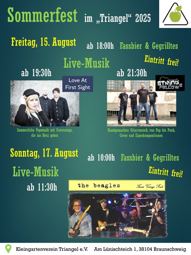 Eine Woche später, Samstag, 16.8.2025, werden "the beagles" beim "Local Heroes mit 10 Bands auf 2 Bühnen" im Waldbad Birkerteich, Helmstedt dabei sein (https://www.waldbad-birkerteich.de/veranstaltungen/open-air-musikfestival/) und am Sonntag, 17.8.2025, wird die Band auf dem Sommerfest des Kleingartenvereins "Triangel" in Braunschweig auftreten.